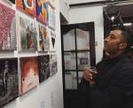 Personally I’m really pleased with how Nothing is Square flows as one whole thing, with the conversations between the carefully placed pieces, with the way it feels in the gallery – and those who know me know well I’m hardly ever truly pleased with a show or a hang – I’m really pleased with the rhythm of Nothing is Square, but we can’t be blowing our own trumpets, it really isn’t our place to say these things, (hey, if no one else is going to document these shows and things then we damn well will! say it, we’ve been inviting the guy from Artlyst to our shows for eight years now, he hasn’t bothered coming to one yet, so many good art shows going uncovered these days unless we do it here of these pages). Nothing is Square works, we’re very nearly pleased with it, she’s pleased with it, I’m pleased with it – lots (and lots) of people came, people reacted in a positive way,, lots of photos were posted on people’s social media feeds, lots of people ‘liked’ lots of people’s posts, art sold on the night, art has sold since, fun was had, people drank, friendships were formed, a Huge Baby contributed, another Huge Baby showed up, someone brought some rather deadly home made blackberry wine (can you bring some more? It was rather good), people talked, people shouted is a positive way, good to see some of the local residents from the estate behind the gallery at the opening (the locals from the estate are one of my favourite things about that gallery), the cat came in, it all went on way past closing time. Hey, we can;t be blowing trumpets, you’ve got a whole load of photos down there, a fractured slide show to run – and as good as it was we can’t really be blowing our own trumpets about it like this – and no I can’t be picking out individual artists or answering the constant question about which of the ninety-odd pieces is my favourite, I love the whole thing, I think we might do it again now that people have got the idea …