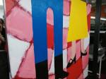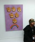 We were rather looking forward to this one, the on-line tasters and the glimpses from his activity over there had us curious about what the might do over here and although the might have been a little restricted in terms of the logistics, I was kind of hoping he might break out beyond the conventions of a regulation canvas (that image we featured on these pages last year when Public first announce the show was rather exciting, the image is up there, it isn’t from this current London show). There’s something rather boldly positive about Hunter Potter’s paintings, his use of paint, his bold marks, his almost primitive marks, the flow of it all, Not sure if the notions of “a ‘real’ American man in the 21st century” fully translate to the walls of a small Hackney gallery on a cold Wednesday night in February but there is something about Hunter Potter’s paintings, there is something about the way he uses colour and the things he says with it… “Revolving around his personal meditation on the expectations of masculinity, Potter examines real and imagined outcomes of his own life given a different set of choices and decisions. Heavily exaggerated and often fantastical, Potter’s paintings pay homage to the various people and lifestyles observed and experienced throughout his upbringing. The work, therefore, seems to respond to, as well as question, Potter’s own potential role and position within the romantic small-town, blue-collar, Americana environment”.