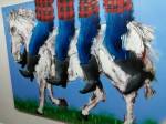 “Throughout this new series, Potter mines his own memories and nostalgia to examine, quite simply, the man that he could have, and perhaps wishes he had become. Often presented through symbolic Wild West metaphors, the paintings are both idealized and self-critical. These hyper masculine characters clad in flannel, cowboy boots, and prison stripes, work to question the very expectation of what it means to be a ‘real’ American man in the 21st century. Using repetitive, familiar, and metaphoric imagery, the paintings place Potter’s own life experiences within the wider arena of Americana folklore: stories that are neither past nor present, fact nor fiction, right nor wrong, but more so a recognisable combination of it all”.