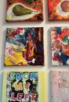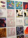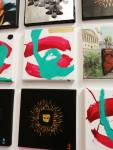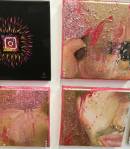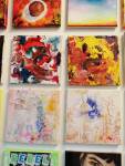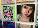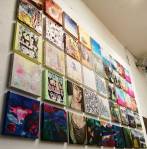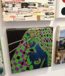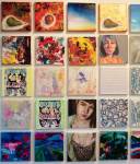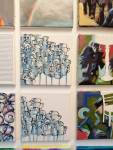 Nothing is Square part two then – a very carefully curated rather painterly group show, 38 artists, 140 identically sized square pieces of art, all on 20cm x 20cm canvas, no one allowed to break that one rule (although several did try). So Nothing is Square Part One happened back in November of last year in the same venue, it was always the plan that there would be at least a part two, and hopefully, if we can find that next venue, at least a part three and four. Of course we could never ever get away with bringing such a diverse cast of artists together in such a small space without the insistence on the size, the identical size along with the very regimented hang are the things that unite the contemporary painters, the textile artists, the pop art flavours, the painted pennies of Quiet British Accent, the joke of James Johnson, the family of Jan Ansell, the beautifully understated riot girl bite of Cultivate co-conpirator Emma Harvey, The stitchery of Jess Scott or indeed Helly Fletcher, the gothic Victoriana of bone collector Mia Jane Harris, the painterly strokes of John Gathercole – there’s some real personallity flowing in John’s work now. That self portrait of Jessica Borrow’s, we need to see more of her, the skies of Catherine Hall, of the bright fabric zestiness and the breaking of thesurface of the canvases of textile artist Amy Crouch or the golden glitter of James Bell or the punk rock of Susan Diamond, actually is Susan more new wave than punk rock? Hey look, without the unity of that almost seven inch single sized canvas, the feel of that old wall of seven inch single cover that were one on the walls of the original Rough Trade shop in Notting Hill – without the very regimented hang and the unity of size this would be a complete dogs dinner of a group show – but it isn’t a dogs dinner, this is fine pooch cuisine, this works as one whole thing, it is almost one piece of art made by the coming together of all thirty-eight artists – a piece of art in itself and even if we are saying all this ourselves, once more, like Part One, Nothing is Square Part Two really does work .