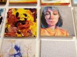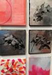And I really like those silver and black Martin Jackson pieces, his odes to Columbia Road especially created for this show down by the flower market. Hey look, I can’t name drop everyone, we put on the show, of course we like the work of the artists involved, we wouldn’t have invited them to come share our wall space with the Grinder swipes and the Tinder likes of Lapinus or the red hands of Ruth Batham or the capturing of things soon ot be lost in that rather different way painter Stephen Harwood does it, or the ceramics of Mandee Cage or the colourful way Yulia Robinson moves her paint, if we didn’t like them. Love that little Laura Ply piece, I know its the same size as everyone else’s piece bit there’s something quiet and delicately tiny and easy to miss in her one rather special piece of hers that’s almost hiding in the show – Laura is another new name to us, as is the vivid fruitiness of Hannah Lehane or the rich red energy of Emma Lee Cracknell or abstract science fiction of painter Paul Blenkenhorn – hey look, I can’t name check everyone, we’re rather pleased with the whole thing, they work as individual pieces, it all works as one whole thing, we’ll have a different favourite every time you ask us, just come see it if you can, or if you can’t then do please explore the photos, but the photos only hint, do come see Trimbambuka‘s rather wonderful Naked Man with a Lemon, she freed herself up a little with that latest piece of hers (one day soon we’ll get some of her bigger paintings on the wall, she has some great work hiding in here studio), Do come see the way Elinor Rowlands paints, there’s a freedom released there as well and those Liz Griffiths paintings that offered so much promise on line, they really didn’t disappoint, we need to see more of her …. (sw)