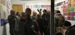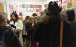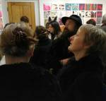Actually this one builds on Part One, this one is more of everything, strength in the numbers, strength in the new names like Alice Harley joining us for the first time alongside some familiar names like Sal Jones or Mary Spence – more is more, less will not do. But hey, we can’t really be doing too much blowing of our own trumpets, we can’t be doing too much shouting our (big) mouths off, to misquote The ‘smiths, we’ll let the art do the talking – it might have been freezing here in East London last night, it might have been snowing earlier in the day, it might be the dark of February, lots of things might be broken right now and there may have been more than a few reasons to just say flip it and stay home last night but the opening of Nothing is Square was packed, thanks everyone. There’s a bag load of photos down there, photos of the art, photos of the people, photos of people taking photos of the art, do come explore the painterly movement of Valeriya Vakutina, she’s a new name in terms of a Cultivate show, come see what one time Huge Baby drummer Matt Atkins is doing in terms of painting, or that new piece that Mr Von Hugo has standing on the plinth (yes it is on a 20cnmsquare canvas), come see where Stefdies has been doing her thing recently, the white cliffs of Dover Scen Sisters piece stands out, and yes she did “die” in the middle of the gallery last night. Come see those cups of Helen Rawlins, or the self discovery of (the Naked Artist) Suzie Pindar, there’s a growing confidence to her work now. Hey look, there’s thirty eight carefully selected artists, well thirty seven and me (there might well be an apple or a pear or a star or a skyline of the wall), the names of all the artists are there on the purple poster, I can’t be blowing trumpets like this, but then I so love the audacity of a Madeleine Strindberg painting, we invite Madeleine to take part in most every show we put on, she is one of my favourite painters, she has this way of doing things with her household gloss and way of making it flow in that way of hers…