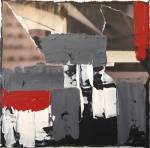 222: MARY T.SPENCE – No Quarter, acrylic, tissue and oil on canvas, 20cm x 20cm