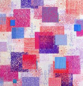 118: CHRISTINE CALOW – INDIAN IMAGES NO.3. Hand pulled silkscreen print with collaged paper, 53 x 53cm