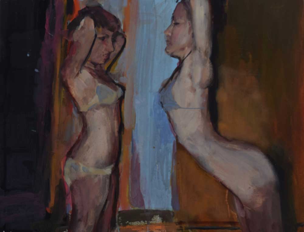 178: GERALDINE SWAYNE – ‘Burnt Orange Background’ (2020), acrylic on board, 40x52cm