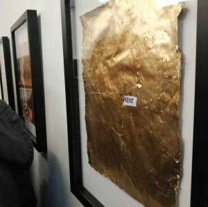 183: ROSEMARY JANE CRONIN – ‘Rent’ gold leaf on magazine page (at Transition Gallery, East London)