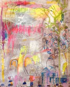 229: LIZ GRIFFITHS – Shoreditch Park 2, Mixed media on plywood, 19.5 x 24cm.