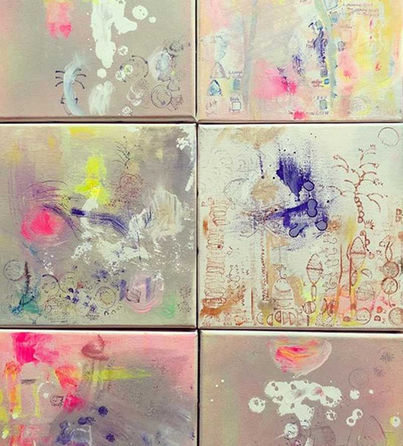 232: LIZ GRIFFITHS – Routemap(s), Mixed media on canvas, 20cm x 20cm (installation shot from Cultivate’s Nothing is Square Pt.2 ahow, East London, March 2020)