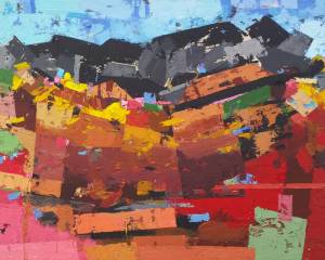 246: MONSUR AWOTUNDE – “Red Land” (2017), Acrylic on Canvas, 56×64 inches.