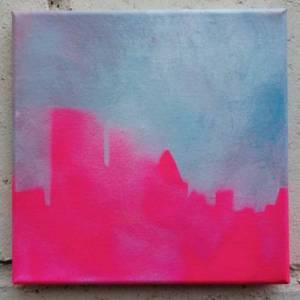 251: SEAN WORRALL – “London Skyline – Across The Thames No2” (December 2019) – Acrylic on canvas, 20cm x 20cm.