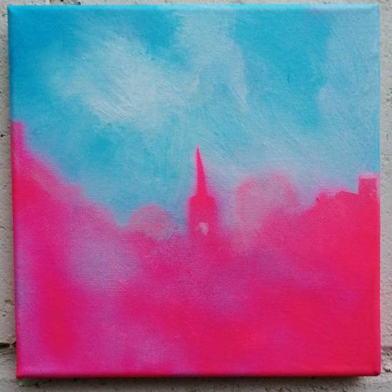 253: SEAN WORRALL – London Skyline – St.John Of Moulins Road, E9 (No. 2)” – December 2019 – Acrylic on canvas, 20cm x 20cm