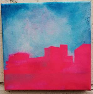 254: SEAN WORRALL – London Skyline – The Southbank from Waterloo Bridge (No1)” – January 2020, acrylic on canvas, 20cm x 20cm