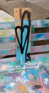 52: SEAN WORRALL – “A leaf” – spray paint on found wood, Nomadic Community Gardens, Jan 2019