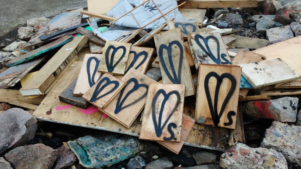 53: SEAN WORRALL – “Leaves” – spray paint on found wood, Nomadic Community Gardens, Jan 2019