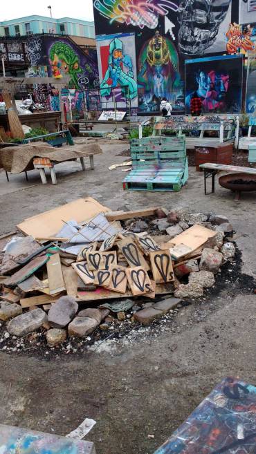 54: SEAN WORRALL – “Leaves” – spray paint on found wood, Nomadic Community Gardens, Jan 2019