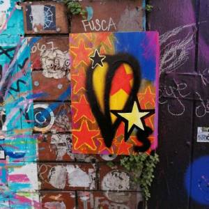 54b: SEAN WORRALL – #43Leaves – 6/43 September 2019 – A leaf painted on a found piece of wood and left hanging on a wall in London for someone to just take