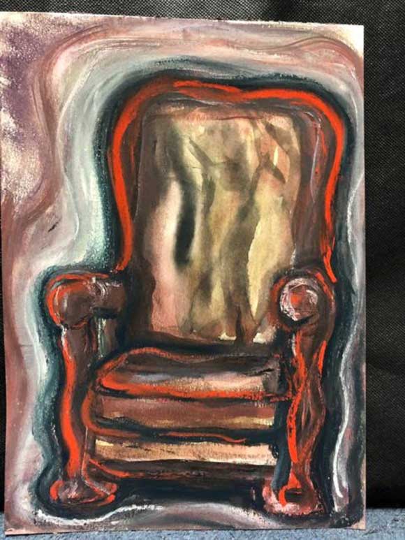 70: JAMES JOHNSTON – “Empty chair. Lambeth North”, 12″ x 8″. 2017, pastel and gouache on paper.