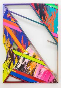 96: MÁRTON NEMES – New Tomorrow 33, 2019, Acrylic on canvas, mirror board, light reflective vinyl, laser cut plexiglass, carpaint, foamex pvc, steel, wood, 130 x 90cm