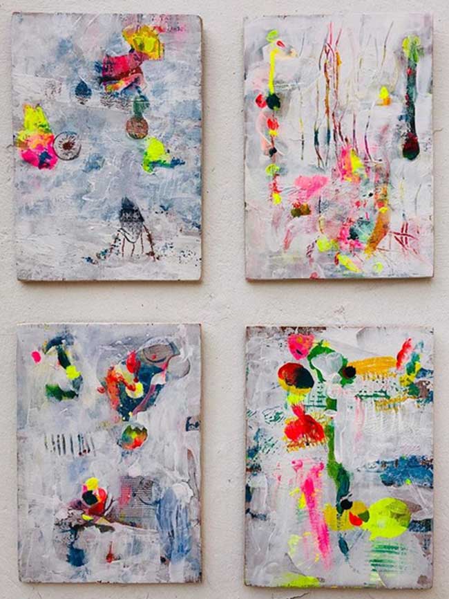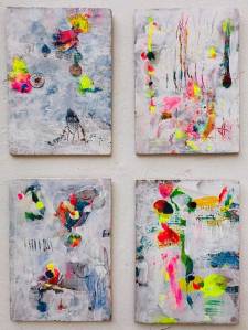 189: LIZ GRIFFITHS – First four of a series of 16. Acrylic on plywood, 5 x 7 inches (May 2020)