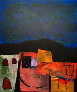 31: IOANA ELECFI – Night In The Village, (2020), acrylic, collage on canvas, 120x100cm