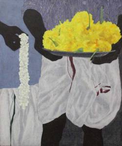 91: DEVI SEETHARAM – Pookkaran (Temple Flower Vendors) – Acrylic on Canvas, 24 x 20 inches