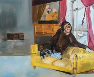 92: LAYA NAVARO – Yellow Sofa – oil on canvas, 200x180cm