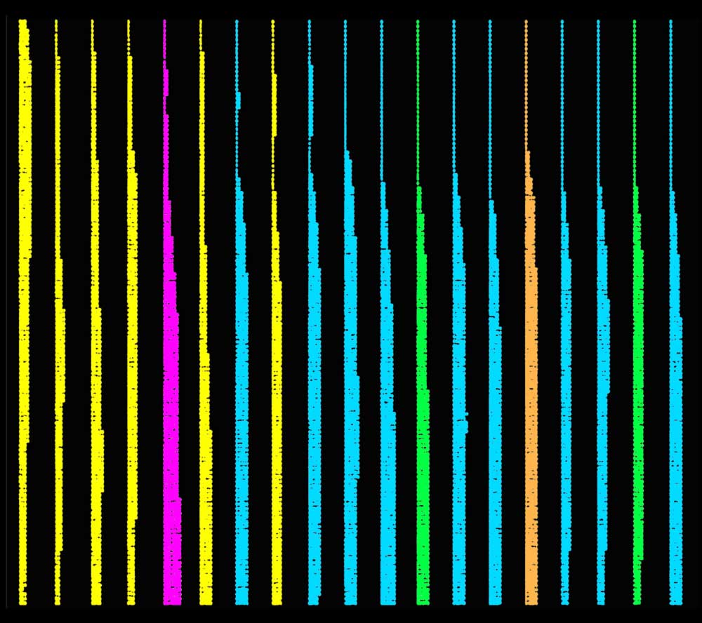 DATA COLUMNS – a visual presentation of the reported active-cases of the COVID-19 transmission used for the SonoraV19 sound installation.