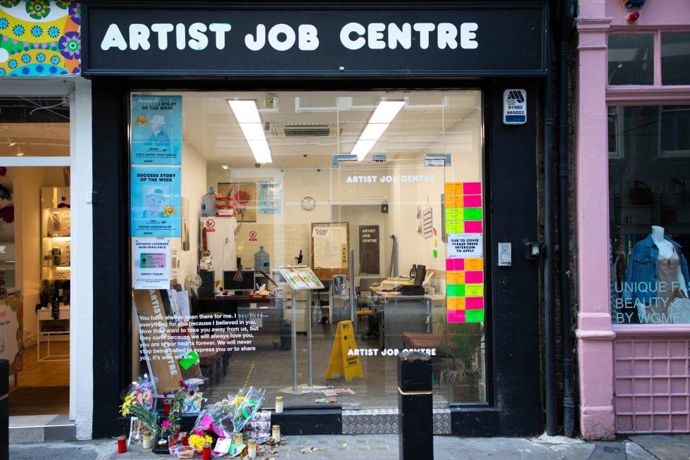 “The UK government have said artists should retrain so I’ve made a little installation in London – pop down and have a look it’s at 67 Neal St, Covent Garden – more info: artistJobCentre.org