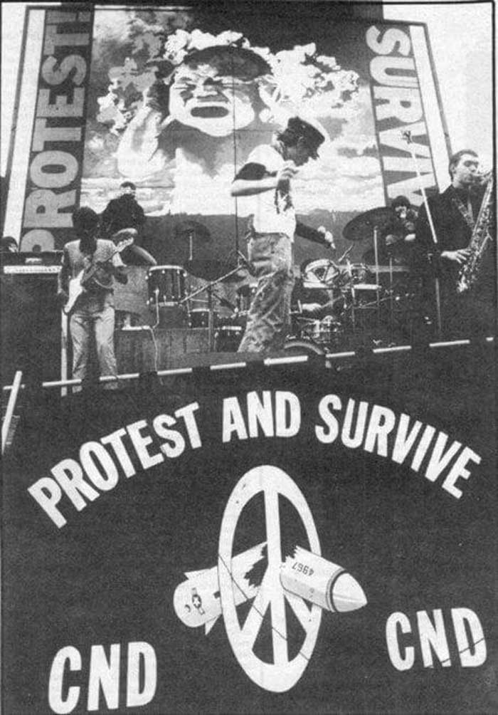 “During the march and before we got near the square we had a stand off with some Stalinists who thought it was just the west who should demilitarise while USSR mobilised. confused police had to separate us. The KJ set was fraught with technical problems but Jaz was also baiting the crowd who mostly hoped they were going to see Woodstock tribute acts. I agree with Sean that it was some real anarchy but not just against easy targets old bill but against the lame self congratulating ageing hippy crowd”. (Icaris Edwardson)”The Pop Group’s appearanve at Trafalgar Square, London, on 26th October 1980, was the final appearance of the band in their first incarnati Performing alongside Killing Joke as part of a widely attended CND rally ‘For How Much Longer Do We Tolerate Mass Murder’ had been released in March and Mark Stewart would perform ‘Jerusalem’ for the first time”
