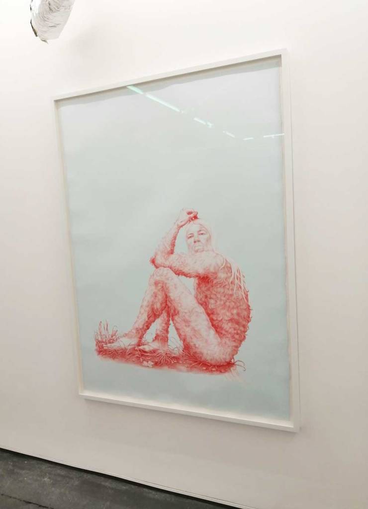 There is no real harm in repeating things here, these words have already appeared on these fractured pages – “there have been several Zachari Logan exhibitions at Hackney’s New Art Projects now, this one, understandably, considering the logistics of it all and the times we’re living through, is a little more understated than the previous times the Canadian artist has featured in the East London space. In all honesty, if you don’t already know you’ll maybe feel a little underwhelmed at first – the show is housed in just one of the four rooms of the gallery, most of the work is small in size (only in actual size mind you) and it kind of feels a bit “is this it?” when you first walk in, no giant full-frontal naked men, not that much in terms of his big wreaths of leaves that ignited so much the first time around, not really that much of anything – but no, hang on take a moment, get over the initial disappointment and look properly and there he is, there’s Zachari Logan in the detail of it all, in there in the exquisite detail of the quiet leaf growth, in the alive lines of the flora, the delicately string lines of the drawings, in the understated power of it all – “artist Zachari Logan pictures the character of the “Wildman”. Among the 11 new drawings in this show, seven relate to this figure and his actions in a fictitious garden. Logan is concerned with the process of the re-wilding of the human form, mutating it into flora, fauna or fully transformed; as symbolic of a new magical state. He uses these transformations as a metaphor for queerness” – and yes, there are many ways to read Zachari Logan and his self portraits, there’s lots to read into his symbolism. his beauty, his warnings maybe? Actually this is only the third Zachari Logan show in the space, it feels like there’s been more, he almost feels familiar to us now. It does feel like this particular show is only a small taste, a hint, an intimate taster, I do kind of need his expansive scale, this is a show to see though, you can’t really see it properly unless you can get right in there with the marks, the warmth, the layers, it is something to try and see in the flesh, you need to really sense it, sense him, this is a show to try and see for real rather than just on line, these are pieces you need to dwell on, spend time with, to just simply enjoy” – that is indeed what was said here back in September when the show open but now the doors at either end and the rooms beyond are open and everything can breathe and the art feels a little more liberated and and a little less locked in and compliments by the other shows so well and really, sorry, well no, not in the least bit sorry, there is a need to gush about the paintings of Fergus Hare again…