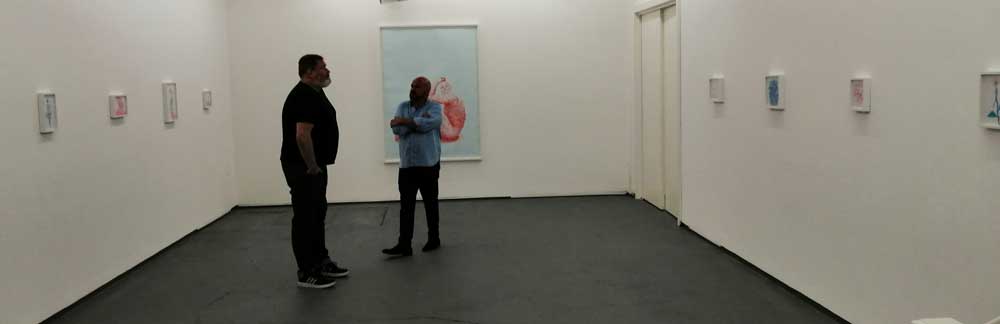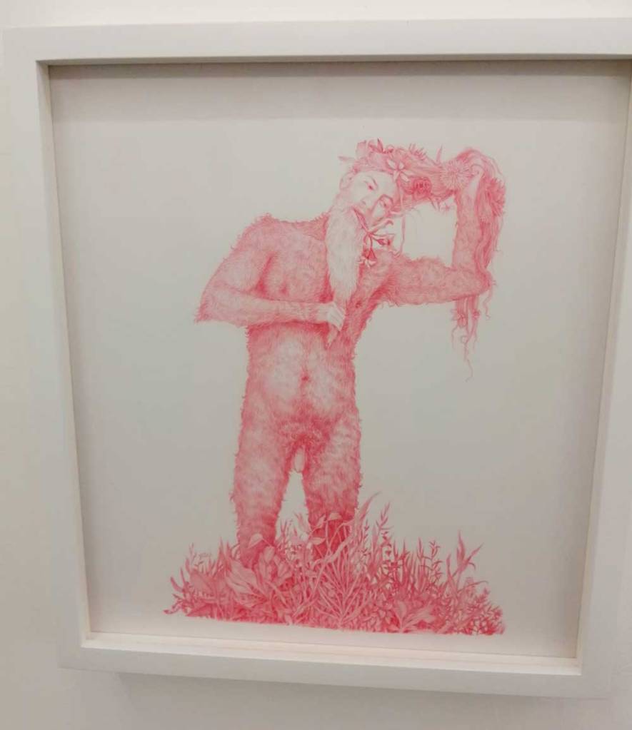And then back through the now liberated Zachari Logan room and the details in those leaves again to the, I almost want to say to the playfulness but no, playful is wrong, back through Zachari Logan’s intimate pieces to the trophy room and the smile of Fredrik Sven Knut Andersson. “We are delighted to welcome Fredrik Andersson back to New Art Projects after his amazing inclusion in our group show “Transformations”. For this solo project we have commissioned Andersson to explore his sculptural ambitions and to present a new and unique set of ceramic works at the gallery. His largest works to date, these pieces represent his commitment to queer culture, and explore themes he has established in his well know comics, posters T-Shirts and planters” – and well this really shouldn’t work in here with the other two but it so so does – “This exhibition explores the semi autobiographical narrative of two gay friends who through their friendship have been are in a constant competition with one another. The competition is one of Love, Sex and Intellect, where their rivalry eventually meets its climax, which also successfully ends their relationship. This piece of work aims to discuss whether or not this game has a winner at all” – see, far from playful really, this is the game of life and the are the serious trophies that life brings – okay, so yes, yes they are playful, yes they are fun, but they’re not, relationships like these are serious things, and oh how this room deserved a crowd of people and that hum of an opening night and laughter and “hi, how are you” and cheap red wine and warm bottles of larger and yes, love these pieces, proper trophies, love it!