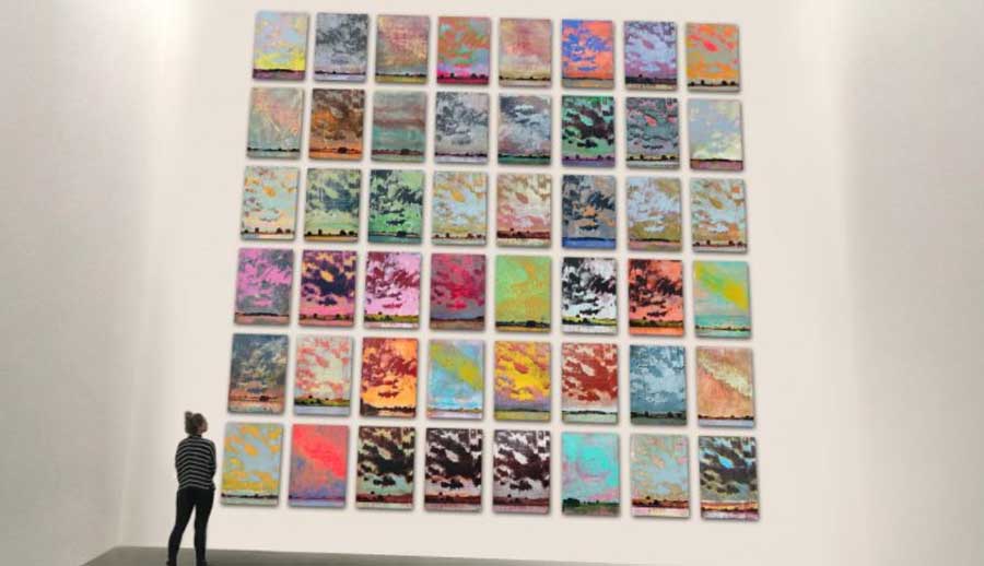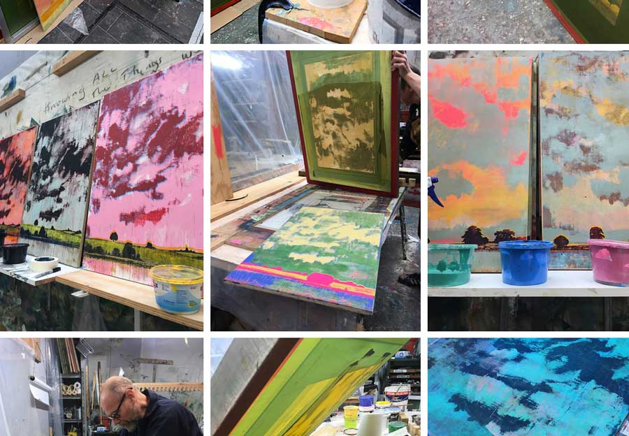 Harry Adams – There is a Harry Adams on-line exhibition happening right now over at L-13. The Collision Print Series, 2020, 86 paintings.. Each one unique. Screen ink on plywood panels..