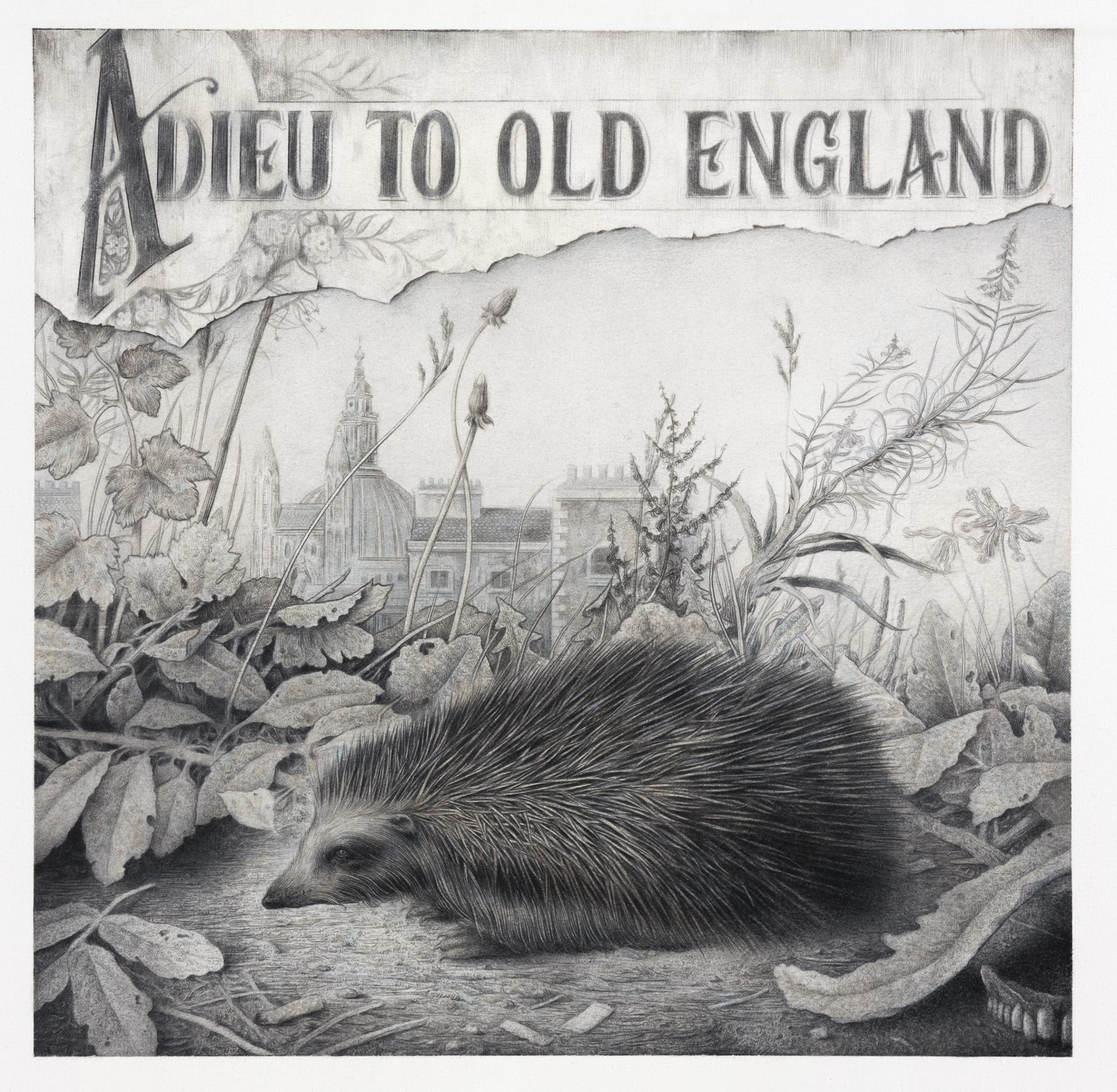 Sverre Malling – Adieu to Old England, 2020, Charcoal and pencil on paper, 76 x 57cm
