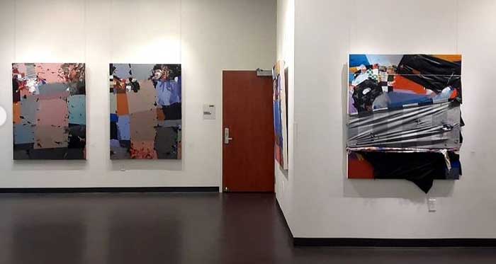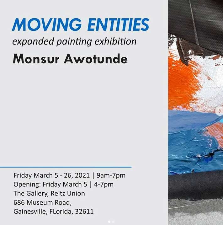 Indeed, Monsur Awotunde first appeared in a Cultivate show back in April 2020, the first of seven Cultivate on-line shows that have now happened since everything got locked-down over here in the UK. Monsur has featured in three of those seven shows, I expect (hope) his paintings will feature in more. his bio tells us Monsur Adeniyi Awotunde was born in Igbo Ora, Oyo, Nigeria, he studied in the UK for a while (damn, we missed him), he’s currently based over in the USA, in Florida, and today, Friday March 5th, he has a show opening, a solo show entitled Moving Entities at Reitz Union Gallery, Gainesville, Florida. We haven’t seen his work in the flesh yet, those painting do look exciting on line though and there is more of sense of scale when there’s a shot of a gallery gallery wall, looks like an exciting show. Monsur’s work does feel like it comes from somewhere, that it has a place, has roots, his paintings feel grounded, a sense of home, of identity, exciting paintings. (sw)