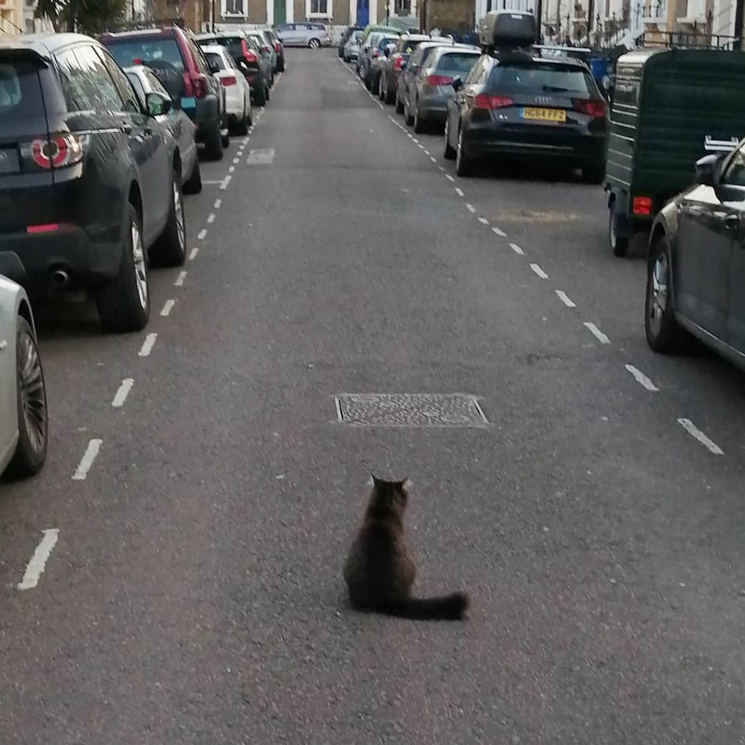 Yet another so called street artist getting “his people” or his “studio” to ask us to remove old coverage from the Organ pages so they can rewrite his history to fit in with their latest marketing plan… Meanwhile, here’s a photo of a cat sat in the middle of the road