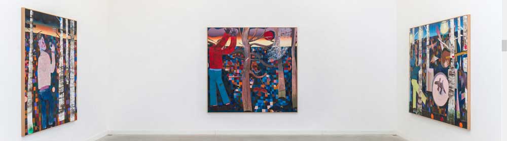 Pieter Jennes lives and works in Antwerp, Belgium, Everybody’s heard about the bird is happening over here behind closed doors in lockdown East London. It does all look rather theatrical, indeed satirical, see fun, elephant stealing is fun, we really do just want to go to a gallery and have fun, see art, stand in front of art, play spot the reference, flat is that paint? What has he done there. Really do want to see this show in the flesh, really do want to spend time in front of the pieces, explore, looks through the trees, eleven paintings apparently. There is a lure, frustraiting, damn, we can but look on line and well here you go, the link (sw)