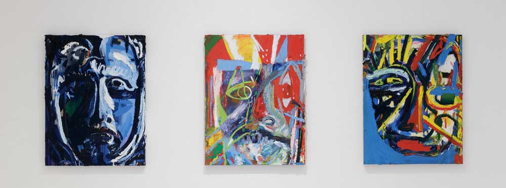 In his paintings, Sweeney moves among art historical references, emulating the enigmatic tone and audacious palette of Surrealist and Russian Expressionist figures such as Alexej von Jawlensky. Deriving further inspiration from the drive of jazz improvisation, Sweeney allows faces and encounters from his subconscious to rise to the surface as he paints. The resulting works, which he describes as having been created through an instinctive, “automatic” process, are abstract topographies and dreamscapes as much as they are traditional portraits. Surpassing the simple objective recording of their subjects, they chart the subjective interiorities of the human psyche….” continued here