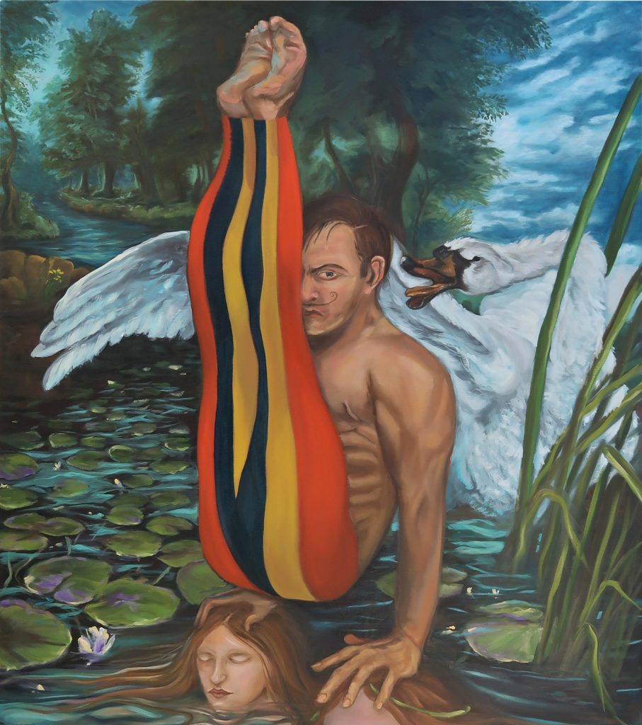 2: Alex Hudson at Hackney’s New Art Projects – “New Art Projects are delighted to present our first solo show by Alex Hudson. His new paintings here are deeply rooted in the Northern European painting tradition and seek to both celebrate and debate the cultural highs of the last 500 hundred years. These paintings playfully dip in and out of the Dutch Golden Age, making playful references to Frans Hals comedic portraits, Melchior d’Hondecoeter’s moody and characterful depictions of birds, small mammals and fruit while looking closely at English myth and literature.