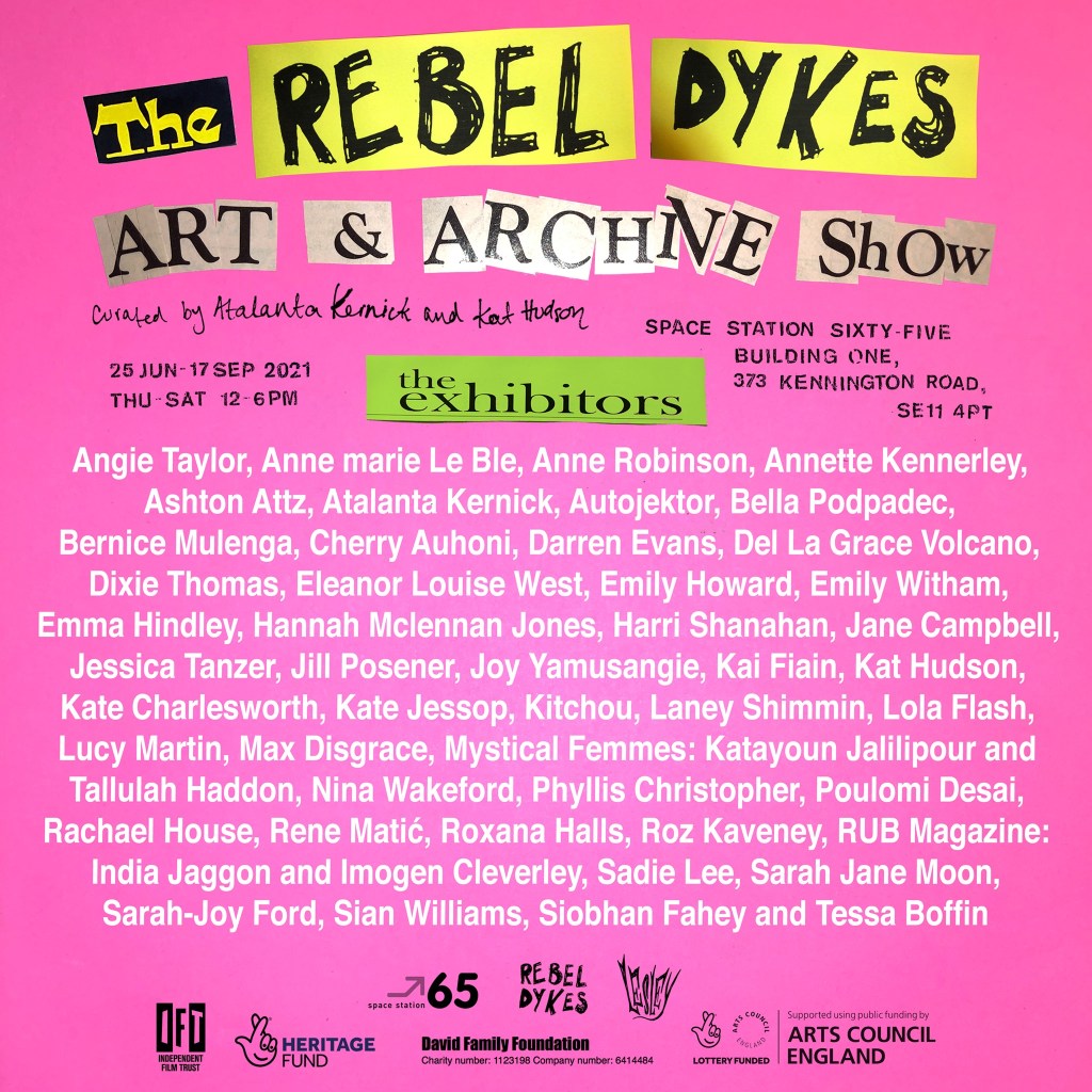 2: The Rebel Dykes Art and Archives Show at Space Station Sixty-Five – We’ll take the words of one of the participating artists, Anne Robinson, for this one – “I am very happy to be showing with the Rebel Dykes at the opening show for newly ‘done up’ Space Station Sixty-Five.. including films from 80s and recent work ‘Darks’ from 2018! The ‘Rebel Dykes Art and Archive Show’ opens this summer at Space Station Sixty-Five in Kennington, London SE11 4PT. Opening night event: June 24th – I think this may be sold out now – but come along to the show.. Open: June 25th – September 17th 2021, Thursday – Saturday 12 – 6pm. Curated by: Atalanta Kernick and Kat Hudson. The Rebel Dykes Art & Archive Show is produced by Rebel Dykes History Project CiC in collaboration with Lesley Magazine. And of course look out for the ‘Rebel Dykes’ film as it goes on release.. starting in the UK at Genesis Cinema Mile End on 23rd June.