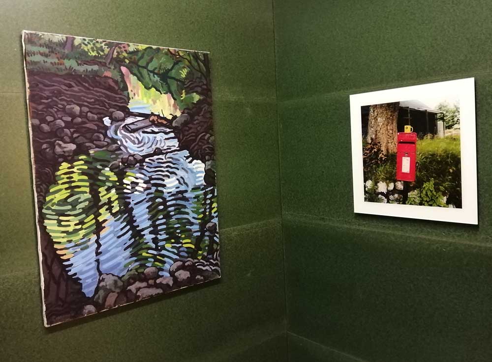 There’s been two or three shows at the rather intimate Finch Project now, the space itself is a small open-plan cube-like affair – a green one rather than a white one – a small cube to the side of a cafe that now occupies an ex bathroom showroom by London Fields. The Finch Cafe have made space for art (as well as poetry), The Show With No Names opened last night, I guess the whole idea is that the one or two pieces from each artist that speaks for themselves – no names, no titles, of course it is hard to resist asking who has done what,some you can spot, Paul Sakoilsky’s recent foray into flora, John Smith’s flag. There a painting that stands out that does demand a question, apparently the painting is by some guy that artist and curator Cederic Christie got talking to over a game of chess, some guy called Paul Simonon (who may or may not have been in some band or other at some point). The mix of work in the space really shouldn’t work together, especially on these dark green walls, it all does though, the intimate space is used rather well. Hey look,, a small show in a small cube in a cafe, it shouldn’t be that important, it surely isn’t that important? Just a simple art show and a poetry reading (we missed that bit), this kind of thing happened almost every night or at least every week in East London six or seven years ago, you just went out on a Thursday evening and expected to find them happening in empty shops or buildings no one else had a use for, to hear that hum of an opening on almost every street. Shows like this are important, artist-led spaces are important, this show with no names (the names did appear on the gallery’s social media feed the next morning, I must admit I kind of like to have a name under a piece of art) is just a simple art show, a rather good one, some good art, a good show, a small one, a simple one, these things are important, see you at the next one. (sw)