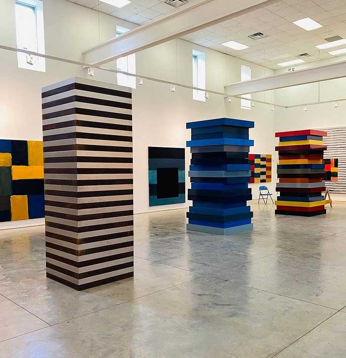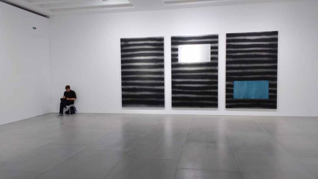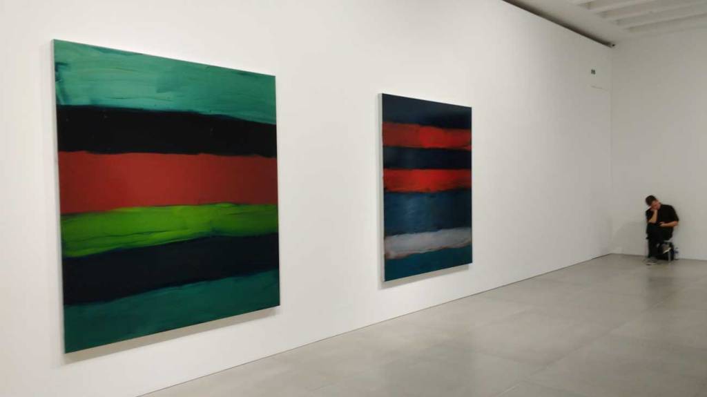 And while we’re here, Sean Scully hardly need support from us, he has had it, do like the Other Sean, can’t resist this phot oof his studio(!) that he posted on his feed a couple of days ago. “Sculptures with paintings in my Tappan studio.”
