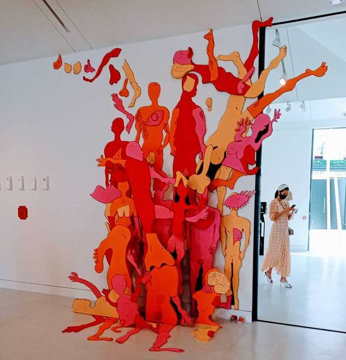 The Five Pieces of Art thing (again)? Well why not (again)? All this art flowing past on various feeds or wrapped up in press releases or jumping off actual gallery walls or wrapping chips or passing on the side of those Whitechapel white vans. So we ask (again) why not five pieces of art every week or so? We do it with music, why not paintings? Why not art? Can you think of one good reason why not to (again)? Well besides the time involved and the this and the that and the dancing around a the latest Serpentine Pavilion, the 2021 Pavilion does look rather exciting, really need to get over there for a proper look at Sumayya Vally’s building, the photos leave a friendly first impression. Five pieces of art then, a semi regular feature, just five pieces of art that have passed our way in the last few days, nothing more (or less) than that., nothing to do with an upcoming show or anything else, just a simple, semi regular five pieces of art feature. How beautifully refreshing were those Julie Caves studies last time? Let’s do it again