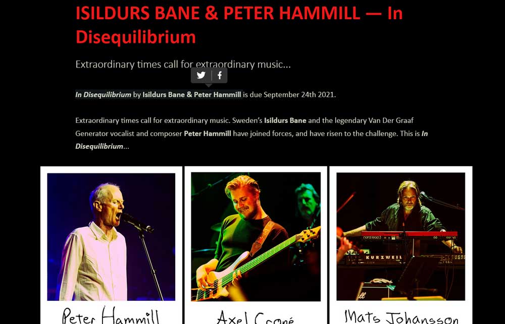 – Extraordinary times call for extraordinary music. Sweden’s leading chamber rock ensemble, Isildurs Bane, and the legendary Van Der Graaf Generator vocalist and composer, Peter Hammill, has joined forces once again and have risen to that challenge