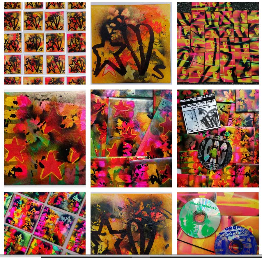 – This fifth piece, this fifth edition if you will, this fifth piece of work comes with two CDs in each of the hand painted envelopes, one a 19 track CD and one an 18 track CD compilation, both from the end of the last century, both professionally compiled and pressed. Both discs excess copies left over and both way too good to be heaved in the recycle bin or painted on. Musical treasure from the corner of the studio where they’ve been buried under paintings and old zines and gig posters and such for the last twenty years. Each painting is numbered, each one signed on the back, each one is a hand painted piece, acrylic and gloss varnish and all 43 paintings on sale via a newly opened Bandcamp page that will make available sone of the art associated with the print days days of Organ and ORG Records