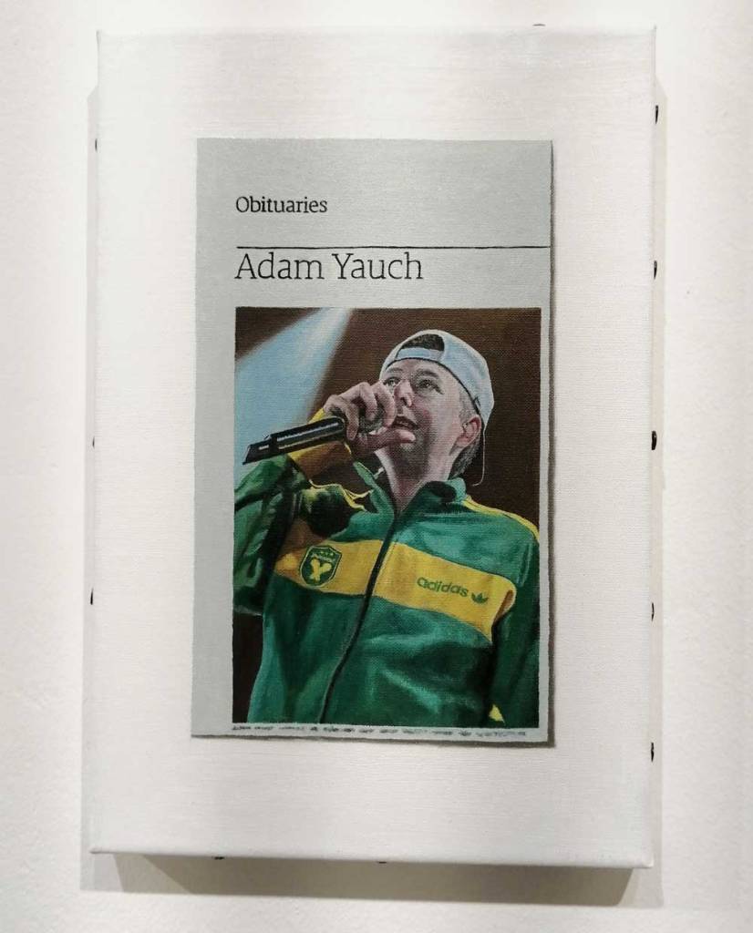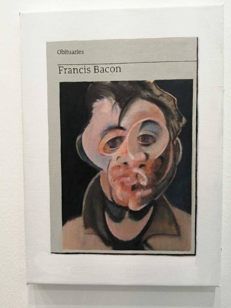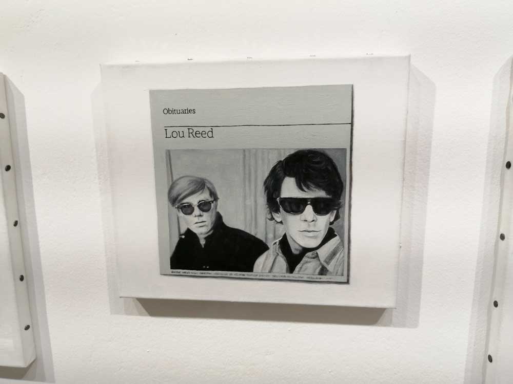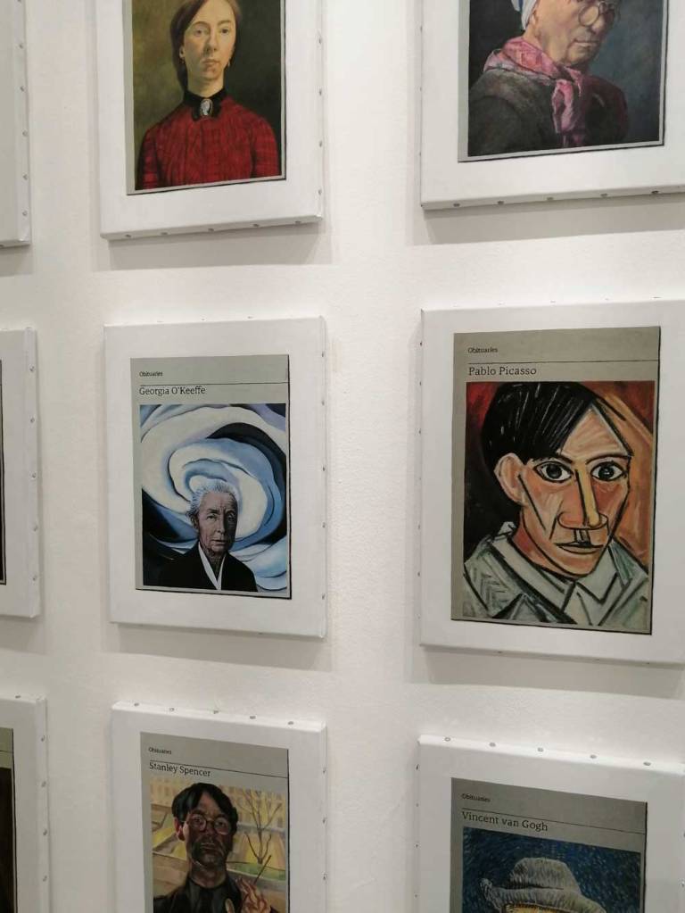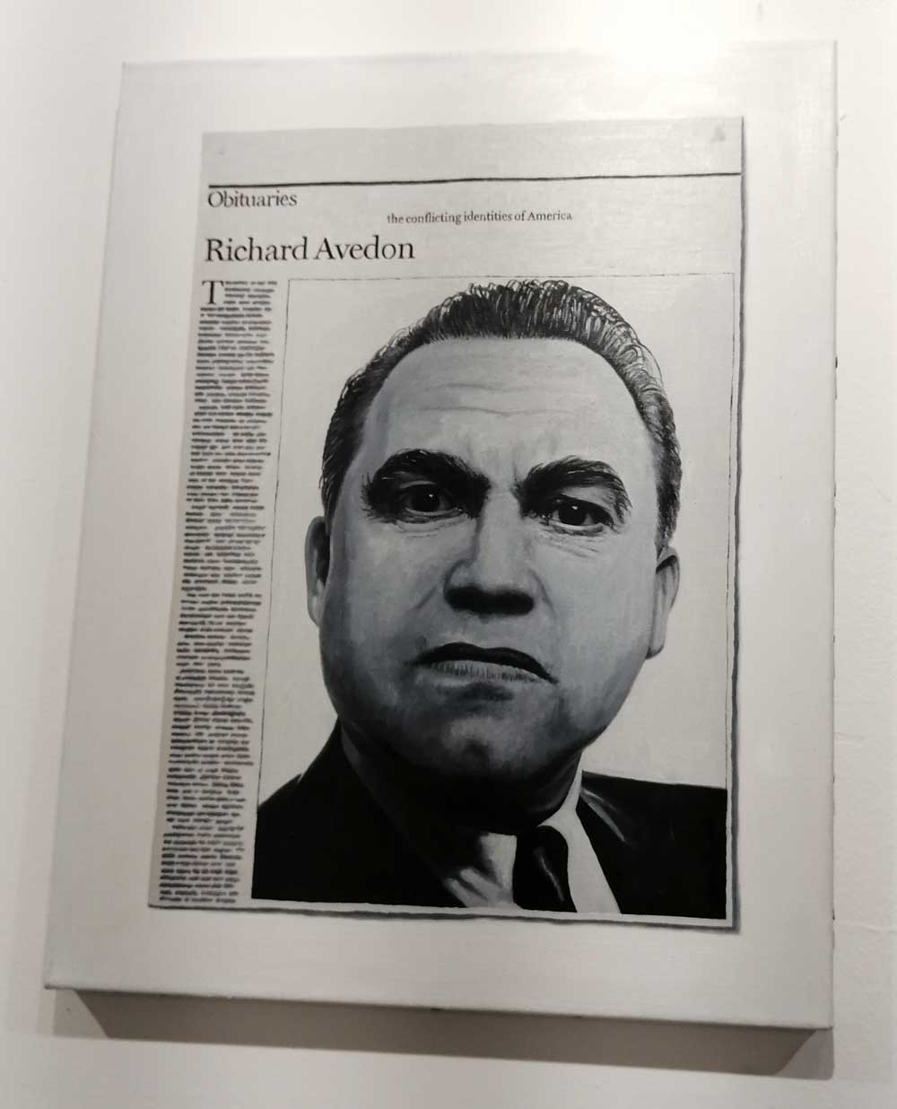 “During the last 20 years my work has continued to follow political global events, while increasingly focusing on obituaries, and especially those of artists. They epitomise a particular way of recording history, through the lives of individuals. But all referencing the world as viewed through newsprint, and subsequently through the painted image. This has led me to reflect on history through the lives of artists, and to meditate on the role of the artist in society. This necessarily includes my own role as an artist and my place in a long and glorious lineage. My artist obituary paintings have included many of my teachers, as well as mentors. The most recent development has been using and remaking the self-portraits of many of these artists as invented obituaries in a newspaper format—as if Rembrandt had an obituary in ‘The Guardian’ newspaper. It has been a particularly fascinating process to consider the styles and techniques of so many artists, as well as reconsidering how they viewed themselves. 10 years ago, I made a work on paper, where I wrote out in pencil all 3,000 names of the people who died on 9/11. This piece is now part of the Sammlung Annette und Peter Nobel in Zurich. Writing out the names took six weeks at about 6 hours per day, every day, and 75 names per day—it was perhaps the most meditative piece of work I have made”.