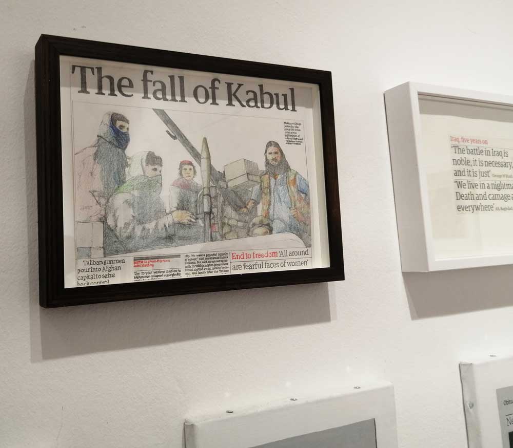 CHARLIE SMITH LONDON is delighted to present a Hugh Mendes retrospective exhibition at The Truman Brewery in Brick Lane, London. Consisting of over 100 paintings and spanning 20 years of work, the exhibition will provide a fascinating overview of Mendes’ career. He is known for political and obituary paintings, where he adopts the visual language of newspapers and renders in trompe l’oeil. The day of 9/11 in 2001 was a significant one for Mendes, the events of which came to fundamentally inform his practice. Timed to coincide with the 20th anniversary of that fateful day, Mendes will also conduct a ‘Meditation for Peace’ at 2pm on September 11th