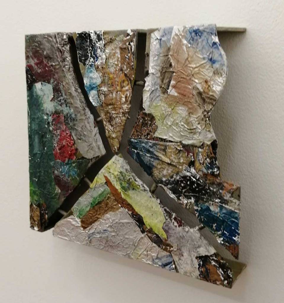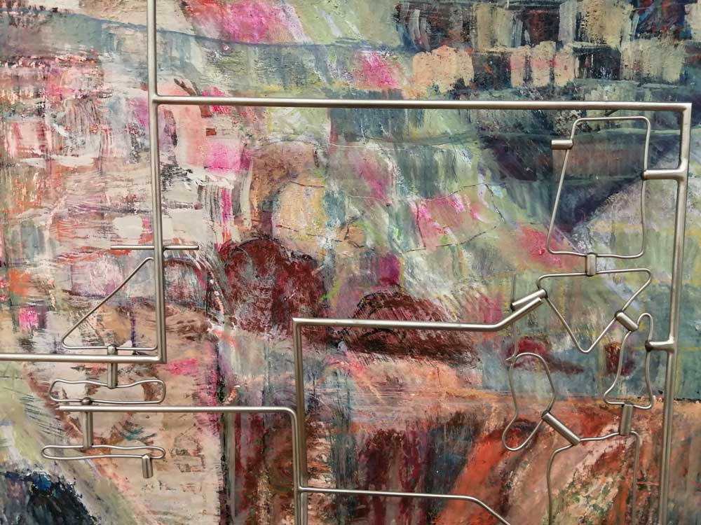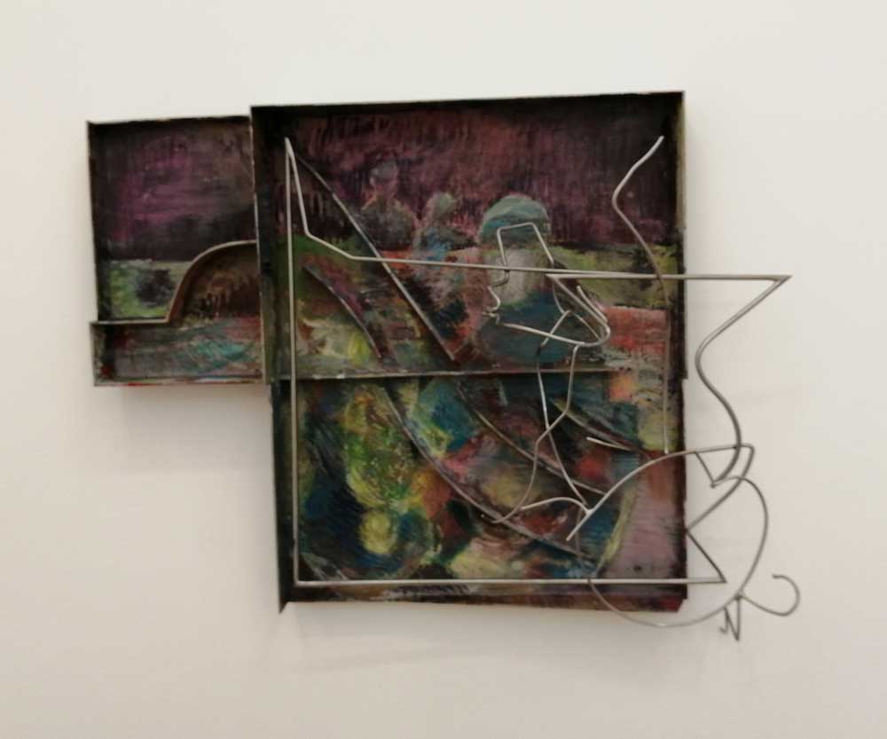 The Annexe gallery is small, it probably makes the pieces feel larger than they actually are, they do feel big, dare I say larger than life? And it is about the edges, the associations the bits where bits meet other bits, it is all about the bits, the tangles, the angles the bits that feel like they’ve fallen off buildings exposing the wire that holds together the concrete. There’s lots here, there’s lot in each piece, they’re all on the wall but you do find yourself changing your angle of view, trying to get a look from the side, from beneath, from around the corner and you are tempted to reach in an peel back a layer or lift a hem.