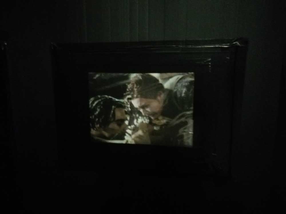 So are we in some kind of Planet of The Apes type future? The bit where they found the old subway train? Well there’s actually not that much to see in here in terms of “things”, it is more the experience, the messing with your ideas, the unexpected questioning of what an art gallery is. It does feel strange initially after a while the few people that are in here do just start chatting like they do at any art show opening (I’m standing in the dark space hearing about someone’s health issues, someone else’s rent problems, hard not hear them talk, it does feel amplified in here in the lowlight). Does it feel like we’ve broken into some kind of lost world? A pharaoh’s tomb or one of those old Tube Stations they closed back before the war, do we need more mess though? Is it too clean in here? Phone boxes always were dirty grubby places back when we all had to use them.