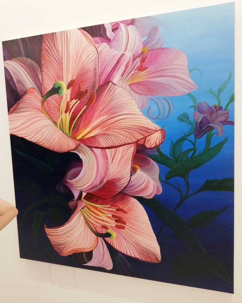 Says Bickmore of her process and preferred vernacular: “Within my paintings, I embrace the sensational pleasures, wonder, and enjoyment of plants as a powerful and elusive site of transformation. …The flowers in my paintings are given a majestic and powerful status – depicted not as victims or specimens of the objective gaze, but instead as living, breathing agents that can build consciousness and create a sense of connectivity.”