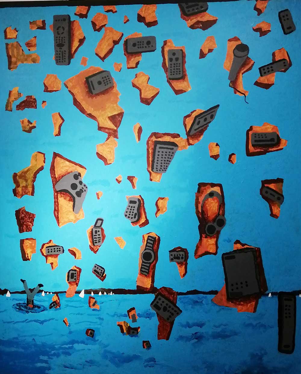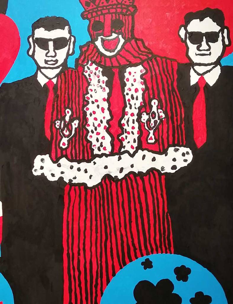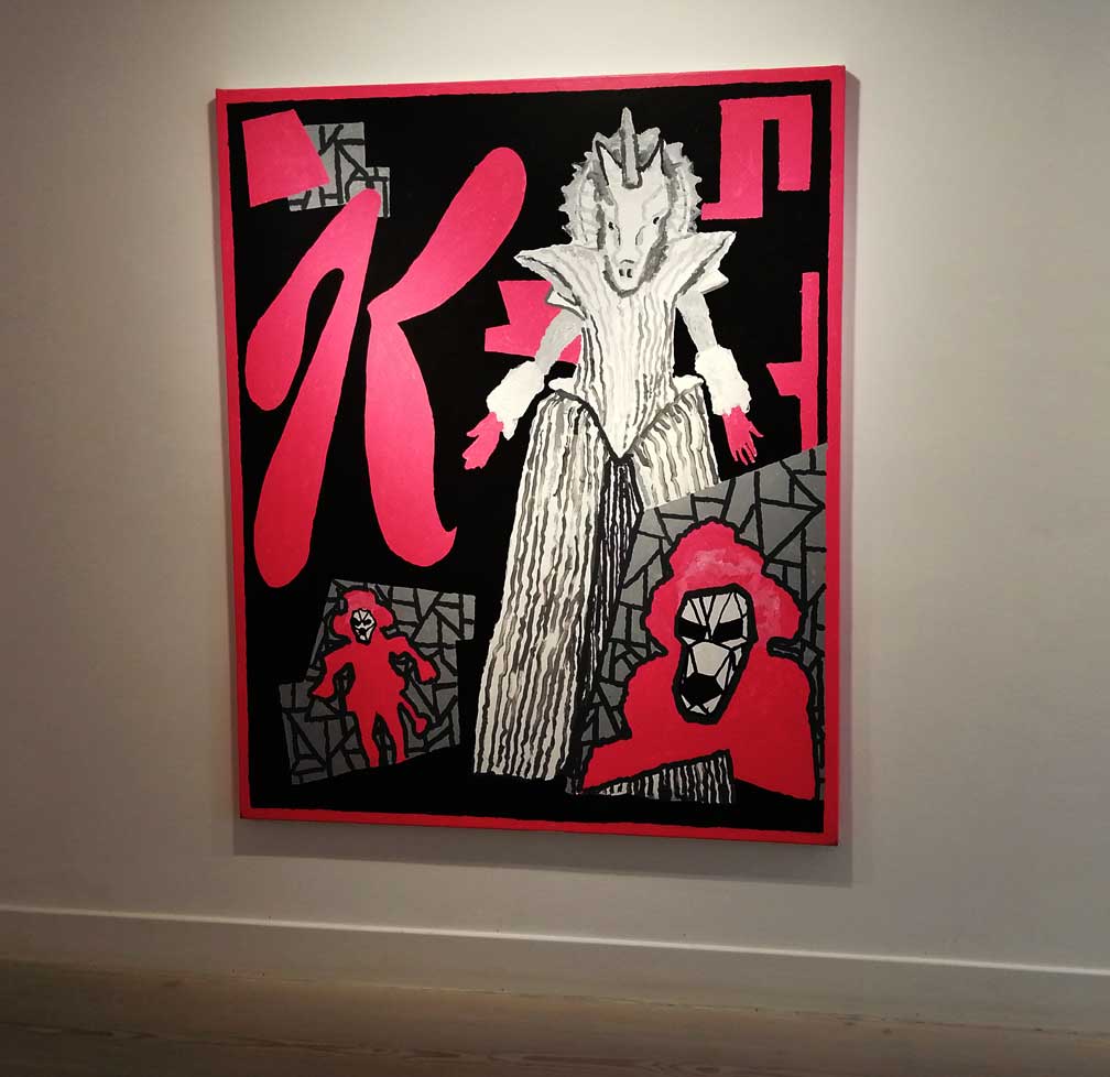 The gallery tell us they are “pleased to present a solo exhibition of new works by British- born, Los Angeles-based artist Derek Boshier”. When you look at these things on-line you never, even when the measurements are there, get a real sense of scale or ambition, pleased to see these are substantial paintings both in terms of size and content. Love the use of colour, love Icarus and his Political Republican Friends, a painting from 2020 .
